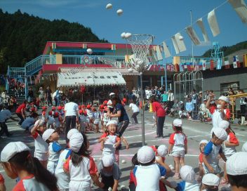 | 保育園に入園していないお友達の競技です。 今年は大勢来てくれました。 |