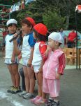| 開会式です。 お友達を いっぱい応援しましょう 席に座って見ましょう 転んでも泣かない事 ... 頑張ります みんなでお約束をしました。 |