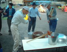 | 上手なおじいちゃんたち。高齢者クラブの会長さんがいろいろと教えてくださいます。 |