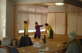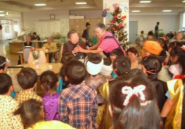 | あゆみえん 九十九園 訪問 2003年12月8日 成木台病院 飯能リハビリ館 訪問 2003年12月9日 老人福祉施設など4箇所の施設にお遊戯で訪問しました。とっても喜んでくださいました。 |