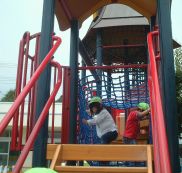| 最後に大型遊具で遊びました。 でも、初めてでちょっとこわかった。 |