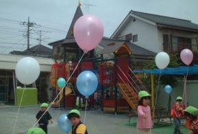風船をお土産に頂きました。 しっかりと持っていないと飛んでちゃう・・・ いくつか大空に。「あー僕の風船・・・・」 |