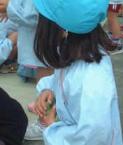 | 3回目の梅もぎ交流、成木保育園の子供たちもすっかりと慣れて自分の園みたい。 今度は8月に成木保育園に遊びに来てください。みんなで待っています〜 |