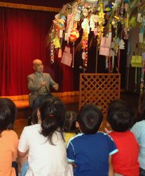 むかし、むかし あるところに、 おじいさんとおばあさんがいました・・・・ おじいちゃん先生が、「桃太郎」の お話をしてくださいました。 先生は永年 園長先生をしていて 退職後は、たくさんの保育園や幼稚園で 昔話をして歩いているそうです。 今まで、多くの子供たちが このお話を聞いておおきくなりました。 |