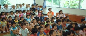| おじいちゃんやおばあちゃんが知っている歌。 子供たちが知っている歌。 たくさんの曲にあわせて、歌ったり、手拍子したり すごく楽しかったです。 もっと聞きたくて「アンコール!!」が出ました。 小さい子が気持ちよくなって、スヤスヤ・・・・ 子供たちはとても印象深かったようで、 翌日も鼻歌のように廊下で歌っていました。 |