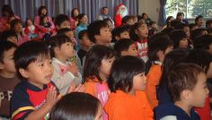 | すばらしいマジックを見せてくださったお兄さんとお姉さんに大感激の子供たちでした。 おませな女の子は、すっかり慶太さんにあこがれてしまったようです。 |