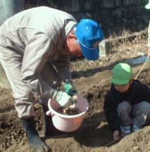 | じゃがいも植え 15年3月12日 地域交流事業 (世代間交流) 4歳児きりん組 |