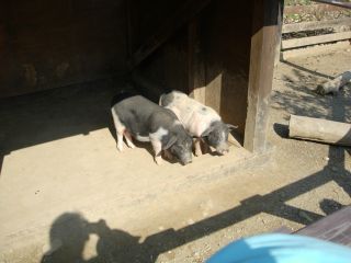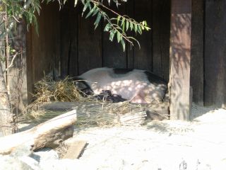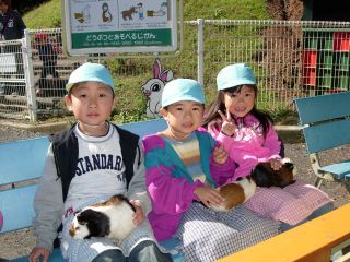 | ふれあい動物園。みんな抱っこした。かわいい。下はちいさい豚ちゃん。お母さんのおっぱいを飲んでいた。 |