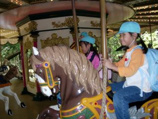 メリーゴーランドに乗って、おやつを食べて とっても楽しい一日でした。 |