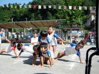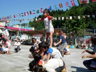 いよいよきりん組とぞう組の組体操です |
