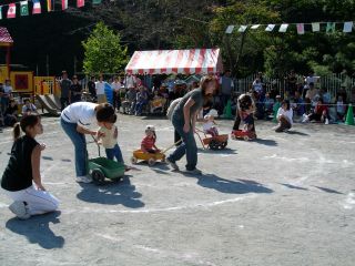 子育て広場のお友達など、 保育園に入園していないお友達の競技です。 お母さんとドライブ・・・ |