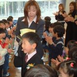 | 楽しかったこと、面白かったこと、けんかしたこと・・・いろいろあった保育園 たくさんの思い出を胸に、元気な一年生になってください。 在園児の拍手に送られて・・・・ |