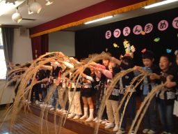 | 先生たちの劇、「ピノキオの大きなかぶ」 ぞう組が12月のお遊戯会にした劇はピノキオ。 先生たちの楽しいアドリブ劇に子どもたちは大喜び。 本当に子どものように楽しんでいたのは、先生たちもかも。 |