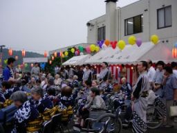 | 17年7月16日 午後、成木地区はすごい雷雨。 その雨も夕方には止んで、 あゆみえんの盆踊りが 行われることになりました。 可愛い浴衣をきてあゆみえんに集合 一人の園児に、保護者、家族、お友達・・・ 思っていたより大変な数。 |