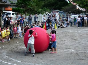 九十九園のおじいちゃんたちとぞう組の玉いれ