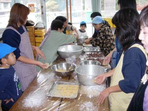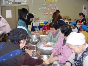 搗きあがると、今度はおばあちゃんたちが保護者会の役員のお母さんたちに