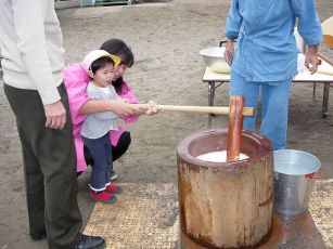 子供たちも、一人ずつ搗きました。