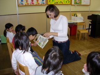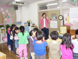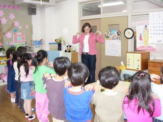 英語で遊ぼう 2006.4.12 今年も横田基地から、英語の先生がきます。 クリスティーさんの後任は、サラさんです。 |