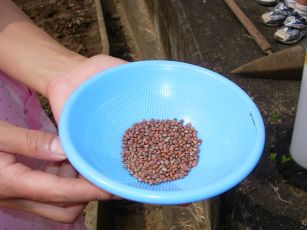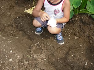 | 3粒ずつ・・・丁寧に蒔きました。 | |