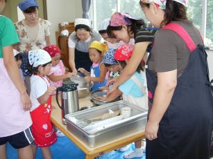| 青梅市健康センターと給食センターにお願いして、 食育のお話とクッキーつくりを親子でしました。 |