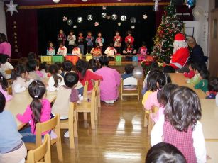 今年も青い目のサンタクロースが「成木保育園」に来ました。