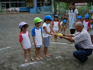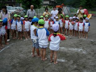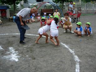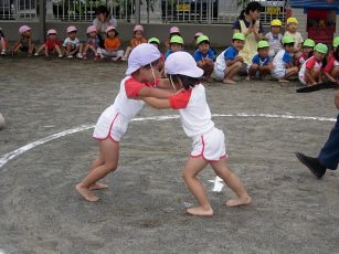 | 今年も夏の終わりの行事 相撲大会をしました。 以前は成木2丁目の諏訪神社で行なう相撲大会に 参加していましたが、今はその相撲大会が 開催されなくなって、保育園だけで行なっています。 |