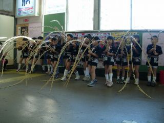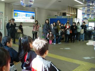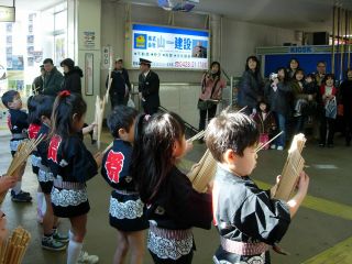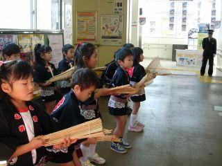 青梅線の河辺駅で今年も年長児が南京玉すだれをしました。