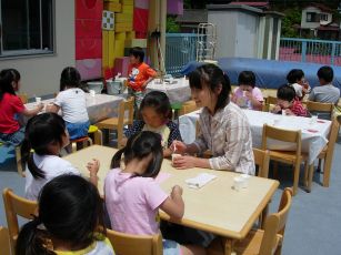 お母さんたちはお誕生会に参加して、その様子を見たり、