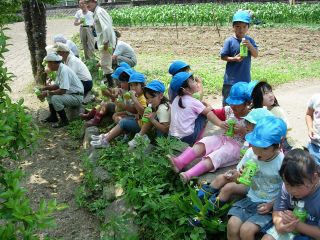 19年6月20日、5歳児ぞう組が自分で植えたじゃが芋を掘りに行きました おじいちゃんは畑に先に行って 待っていてくれました。 |