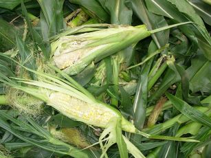 食べられてしまっては大変と、まだちょっと採るには早いとうもろこしを