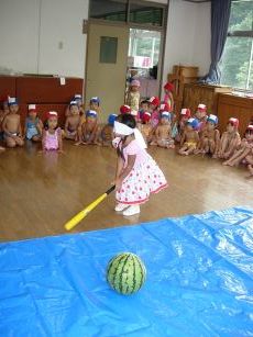夏の終わりの行事 プール納めにスイカ割をしました。
