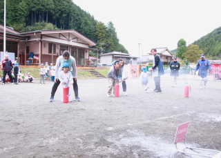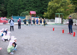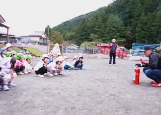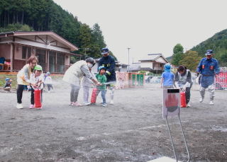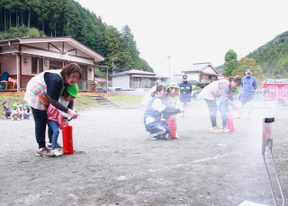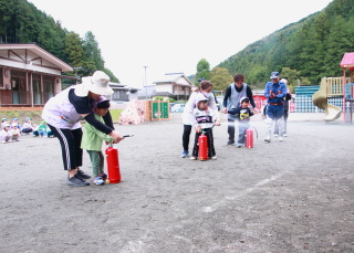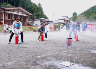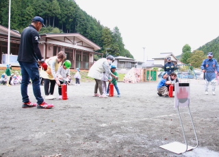訓練用消火器を使っての消火訓練を、