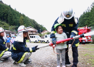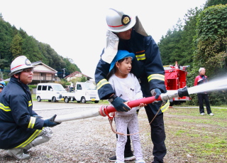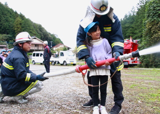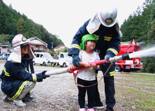 本物の消防用ホースで放水を行いました。