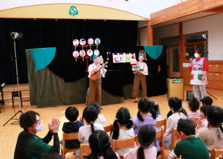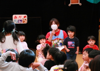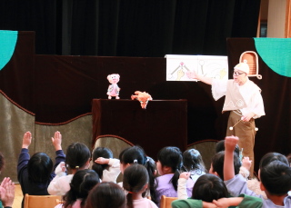 楽しい人形劇に園児は大喜びでした。