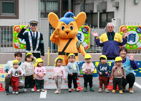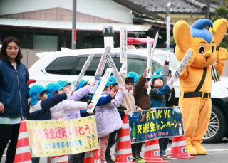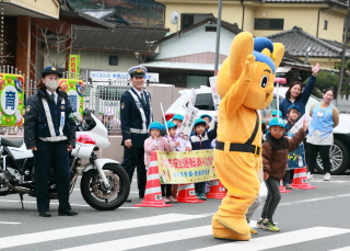 交通安全を呼びかけました。