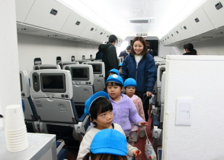 本物の飛行機に乗ったような感じでみんなニコニコ。