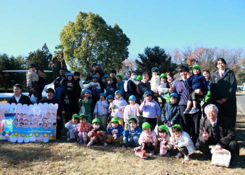 屋外で記念撮影をしました。