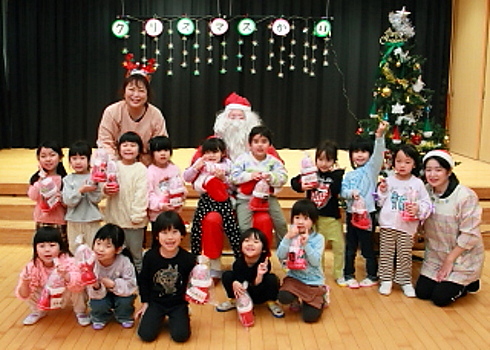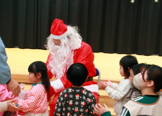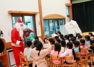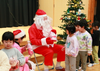 サンタさんから園児1人ひとりプレゼントを貰いました。