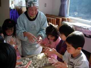 おばあちゃんたちがこねて、