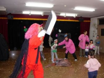 鬼の役は、ひろこ先生とかおり先生。とってもかわいい鬼。
