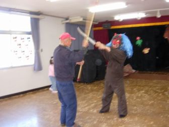 | そこに用務員さん登場、・・・鬼は「もう悪いことはしません・・・・みんなに良い鬼になることを約束しました。 |