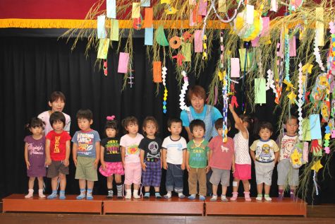 子供たちの願いが叶うよう、一緒にたくさん飾りました。