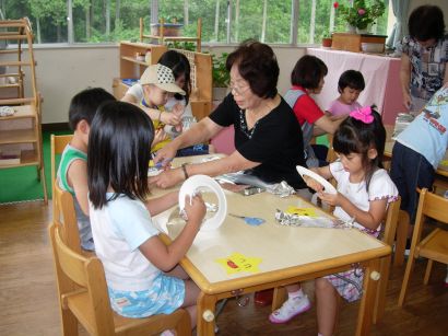 今年は、地域のおばあちゃんたちに来ていただき、一緒に飾りを作りました。