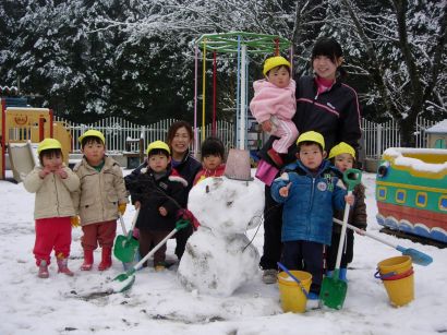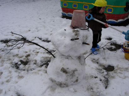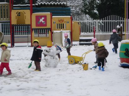 雪だるまもできました。子どもたちにとっては、とってもうれしい雪でした。