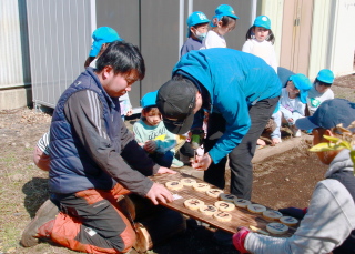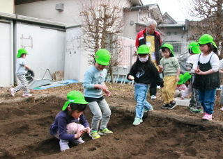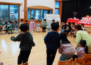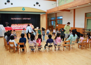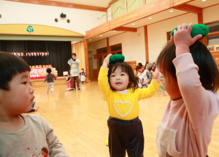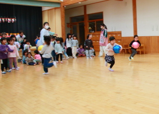 ホールの中で乳児クラスと幼児クラスと順番に遊びました。