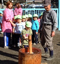 平成13年12月14日、成木保育園では、餅つき大会。