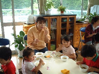 今日は保護者の試食会 お母さんたちと一緒に保育園の