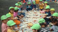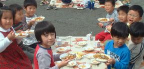全員が「いただきます」をするまで、 先生たちは大変。 みんながおいしく食べられるように 頑張っています。 |