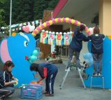| 今年も可愛いぞうさんたち動物が保護者の方や、 お客様をお迎えします。 まず ここで記念撮影・・・・ |