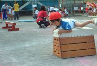 | ぱんだ組3歳児のサーキット マットで前転、跳び箱からぴょん、トンネルくぐり 今日はとっても上手でした。 |